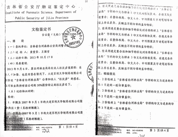 2005年9月,赵卿全以非法占有为目的,利用私刻白河林业局公章、伪造百利公司股东会决议、伪造签名、伪造时任白河林业局局长杜汶彦身份证和结婚证(经吉林省公安厅物证鉴定中心鉴定(吉公鉴(文检)字【2013】034-3号(证据1)和长春市公安司法鉴定中心(长)公(开技)鉴(文检)字【2017】56号(证据2)鉴定均系伪造)等非法手段将百利公司95.5%的股权转移到其个人名下。