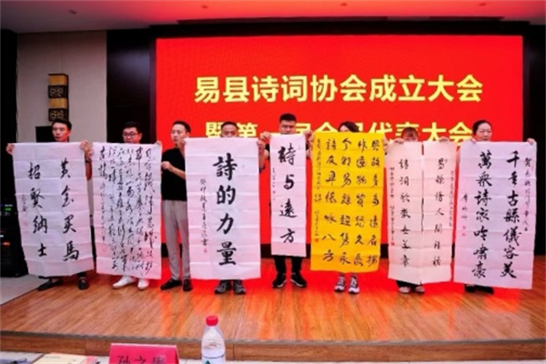易水燕都荆轲塔,先贤壮士诗为家。素知文人各怀襟,时逢盛世入诗林。2023年9月16日上午,河北省易县诗词协会成立大会暨第一届会员代表大会在易水砚大酒店圆满召开。
