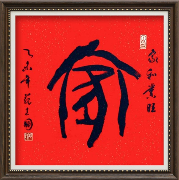 苑建国:审美中了解甲骨文是我的价值取向。汉字造字有六原则:象形、指事、会意、形声、转注、假借。这使得每一个汉字都可以成为一个故事。这个故事从哪来,就从这个汉字的内涵,本义来分析,解析出一个造字故事。解析汉字的本义,追根寻源应该从甲骨文入手。比如国家的国:繁体字是由“口”(城墙)“戈”(兵器)“口”(人口),再加一个“一”(土地)组成。有这样一种简单字面解释:以城墙为界,用军队、武器保卫人口和土地。其实,这个解释也是望字生义,真正符合国家的“国”字本义,还是要看甲骨文。甲骨文里的“国”就是一个“戈”一个“口”,没有城墙也没有土地,就是用武器保卫人口。在古时,掠夺别的国家的人口,要的是老百姓归顺,而不是掠夺土地。人归顺了,领土不就随之归“国”了吗?用甲骨文写榜书,字数不多,言简意赅,一般写完,我都会用行书加一个备注。深奥的艺术,通过深入浅出,普及了甲骨文知识,让大家在观摩当中了解甲骨文,了解甲骨文书法,了解榜书。这也是我甲骨文书法的价值取向之一。每个甲骨文字,每个汉字都有一个故事,解释起来妙趣横生。用这种方式普及甲骨文,传承传统文化,也是社会责任的体现。所有文字都源于物形,实践也证明在娱乐和审美中了解甲骨文的确是一个有效的办法。我在学校给同学们做甲骨文书法演示和讲座,小学生听懂了。“奥,原来我们学的字,最早就是把身边的人和事画下来的符号呀。”可以推想这些孩子已经对中国的文字起源产生了兴趣;外国人认为学汉语写汉字是最难、最头疼的,我给外国友人做甲骨文书法演示,象形的艺术是没有国界的,这些外国人一会儿就懂了,“哇,中国字就像画。”这些老外对中国文化产生了兴趣。2011年,我写的甲骨文榜书配上释文,被带到韩国,送给了卢泰愚和卢武铉夫人,出乎意料的是卢泰愚一看就懂。2012年6月,朋友把我写的“友好交往”甲骨文榜书送给南非大使馆总领事,翻译把释文一念在场的外交官全明白了。在我参与的一些活动中,也是通过甲骨文书法,传播文字与书法知识,引导、培育观众的审美意识,从而达到宣传中国传统文化、弘扬传统文化的目的。