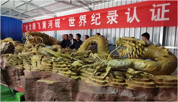 2020年,用黄河原石潜心创作的巨型砚台——“金龙腾飞”砚,被世界纪录协会认证为“世界最大的河砚”……