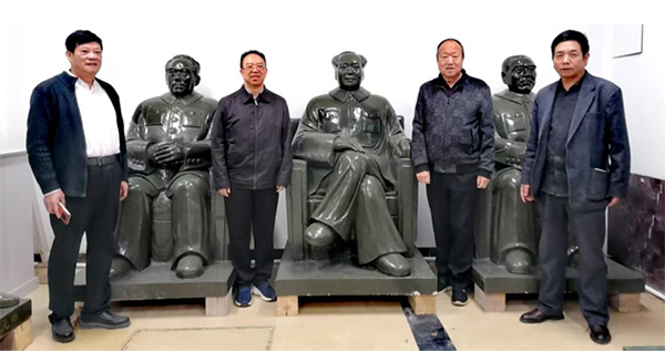 活动的核心环节——伟人雕像揭牌仪式,将现场气氛推向高潮。随着红绸缓缓落下,由洮砚石打造的巨型雕像群震撼亮相:毛泽东、周恩来、朱德三位伟人雕像每尊重达近4吨,身旁矗立的十大元帅、十位上将雕像同样气势恢宏,共同构成“红色文化+非遗艺术”的独特景观。雕像选材自甘肃优质洮砚石,雕像群的创作不仅是对老一辈无产阶级革命家的致敬,更希望以非遗技艺为桥梁,让红色文化通过具象化的艺术载体走进大众,成为“铭记伟人功绩、赓续红色血脉”的鲜活教材。