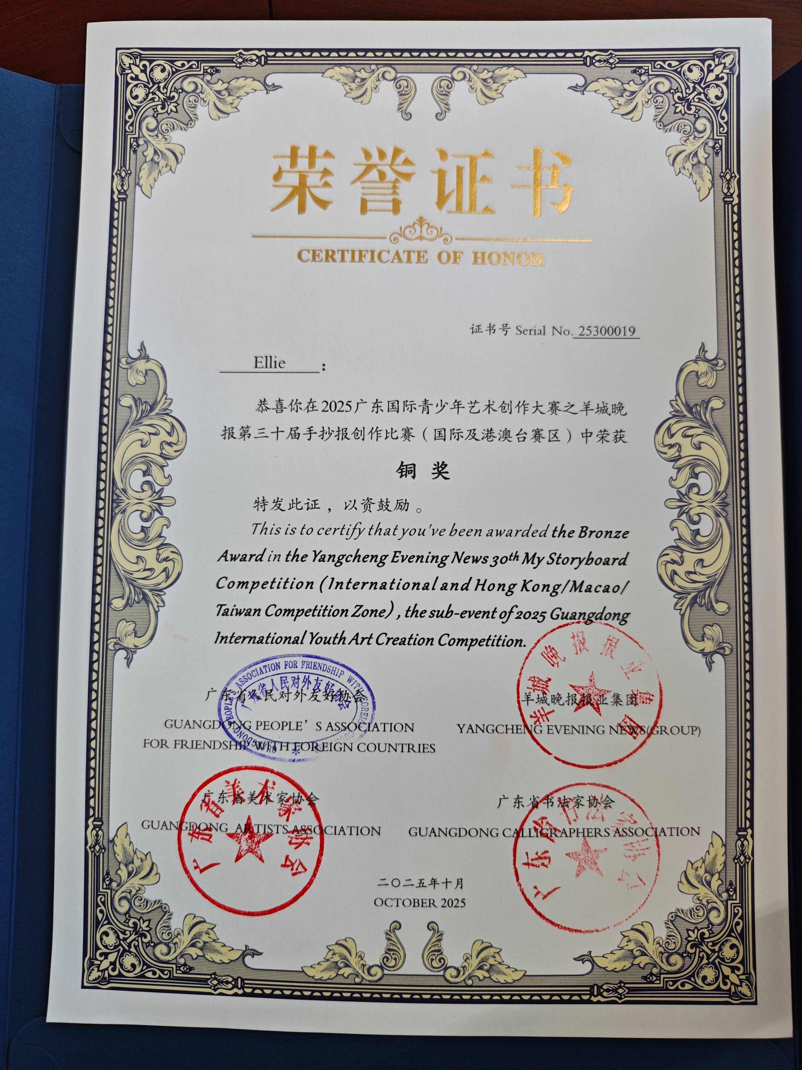 近日,2025“粤友杯”广东国际青少年书画比赛暨 羊城晚报第三十届手抄报创作比赛(国际赛区)圆满落幕。赛事以艺术为纽带,吸引全球青少年广泛参与,展现了中外青少年交流互鉴的蓬勃活力。