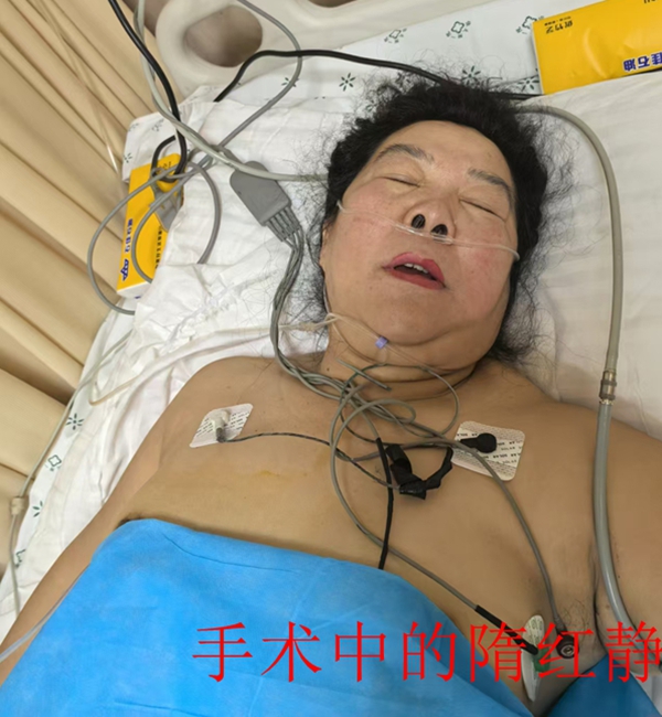 更触目惊心的是,术中突发重大手术安全责任事故,医护实操严重失误,医用手术缝针意外弹飞脱落,直接遗落留存在隋红静腹腔深处。事故突发后,院方未第一时间启动应急急救预案、紧急联动上级医院转诊施救,反而在封闭手术室内耗时三小时反复盲目探查翻找异物,期间不顾患者身体耐受极限,违规三次叠加注射麻醉药剂,多重麻醉重创脏腑机能,反复腹腔翻动拉扯加剧体内软组织不可逆损伤。三小时徒劳探查无果、确认无法安全取出遗留缝针后,医护草草缝合切口结束手术,主刀医生仅轻描淡写的告知家属术中异物遗留实情,态度冷漠、毫无愧疚歉意,漠视患者生命健康与家庭担忧。
